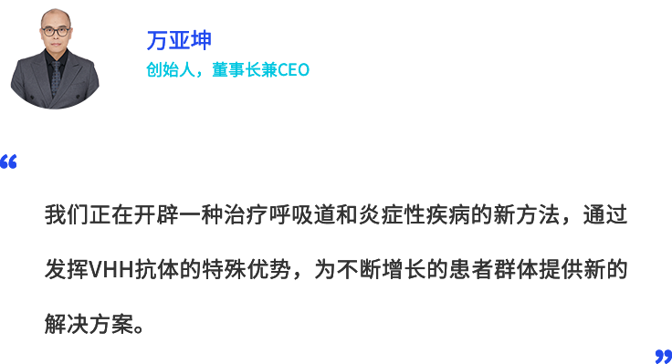 万亚坤博士致力于纳米抗体研究19年,拥有极为丰富的纳米抗体项目经验,在纳米抗体领域享有极高的声誉与知名度,曾入选中国科研实验室上海药物所“百人计划”、荣获江苏省六大人才高峰计划、教育部“高层次创造性人才计划”和“新世纪优秀人才”、“2021年度张江国家自主创新示范区杰出创新创业人才”“2024年浦东新区明珠领军人才”等荣誉称号。其创办的企业“Ezpay生物”入选2020中国生物医药最具创新力企业50强、2022年中国医药创新种子企业100强,2022年专精特新中小企业。